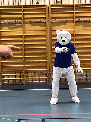 och fick besök av Westans maskot under träningen som hjälpte till att visa och