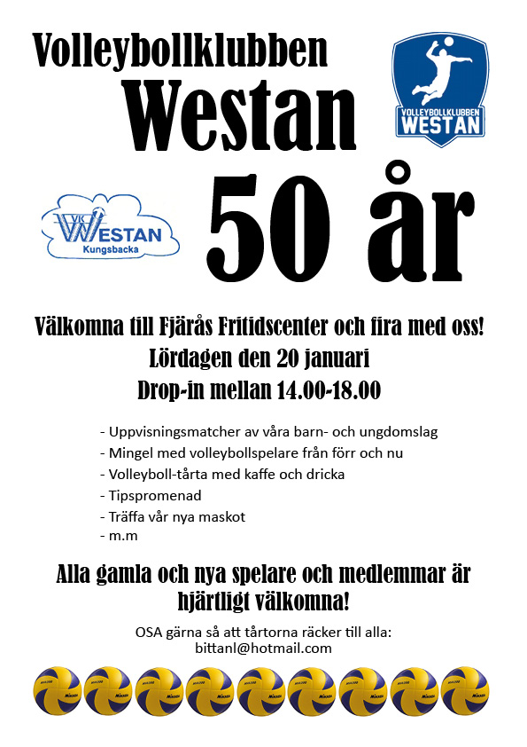 28 december fyllde vi hela 50 år - detta ska firas! Välkomna alla nuvarande och tidigare medlemmar och volleybollspelare den 20 januari.