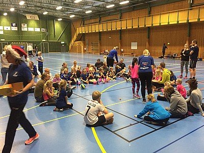 Söndag den 11/12 hade vi årets sista träning och föräldrarna var inbjudna att spela mot barnen. Ett litet krux bara för föräldrarna att de var tvungna att sitta ihop två och två.... ;) Efter matcherna där barnen glänste med fina volleybollslag och kast så fikade vi alla tillsammans. Stort tack härliga barn för denna terminen. Nu ser vi först fram emot lägret 7-8 januari och sen börjar träningarna igen den 15:e januari.